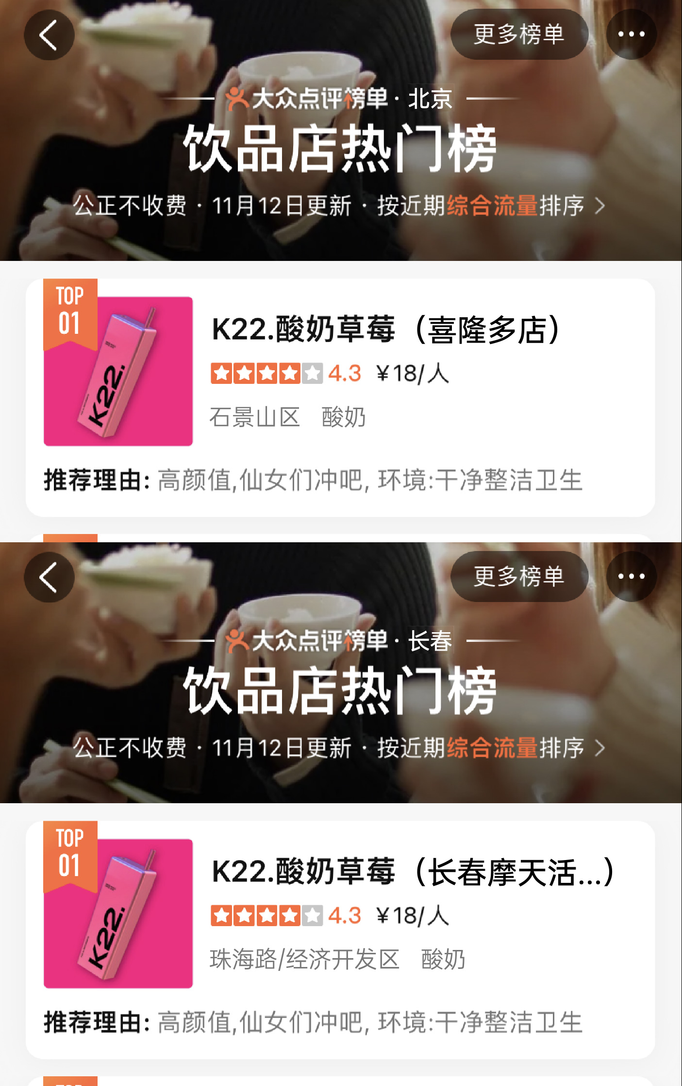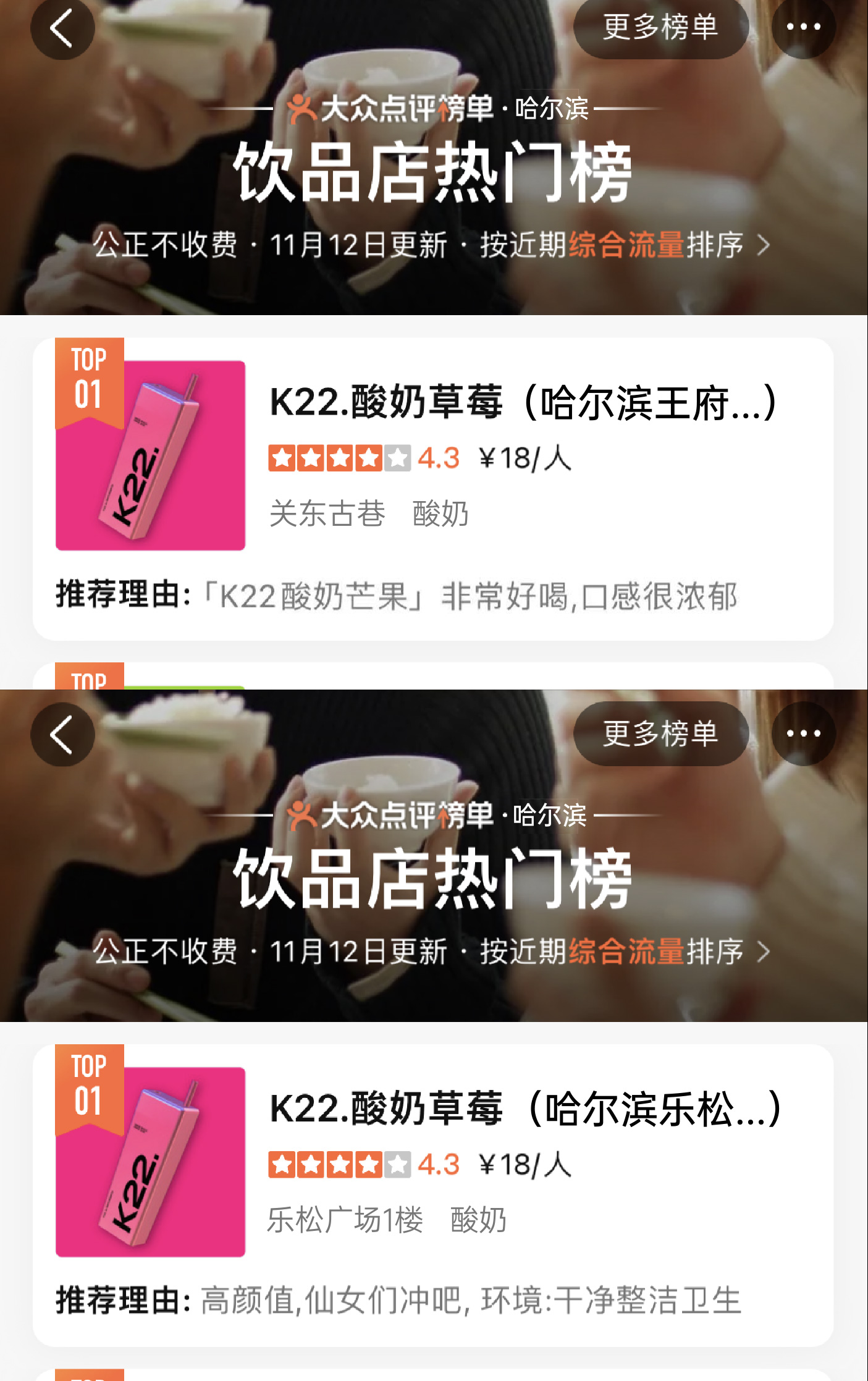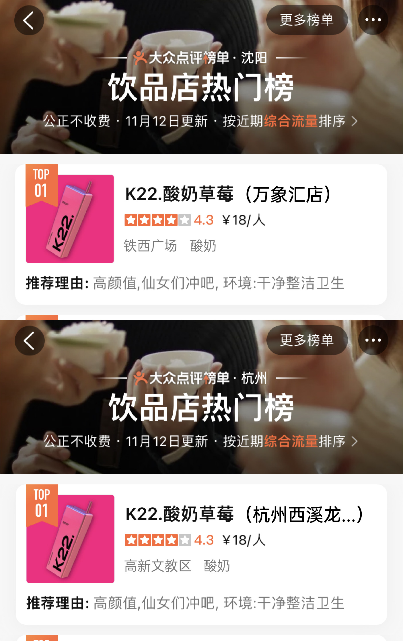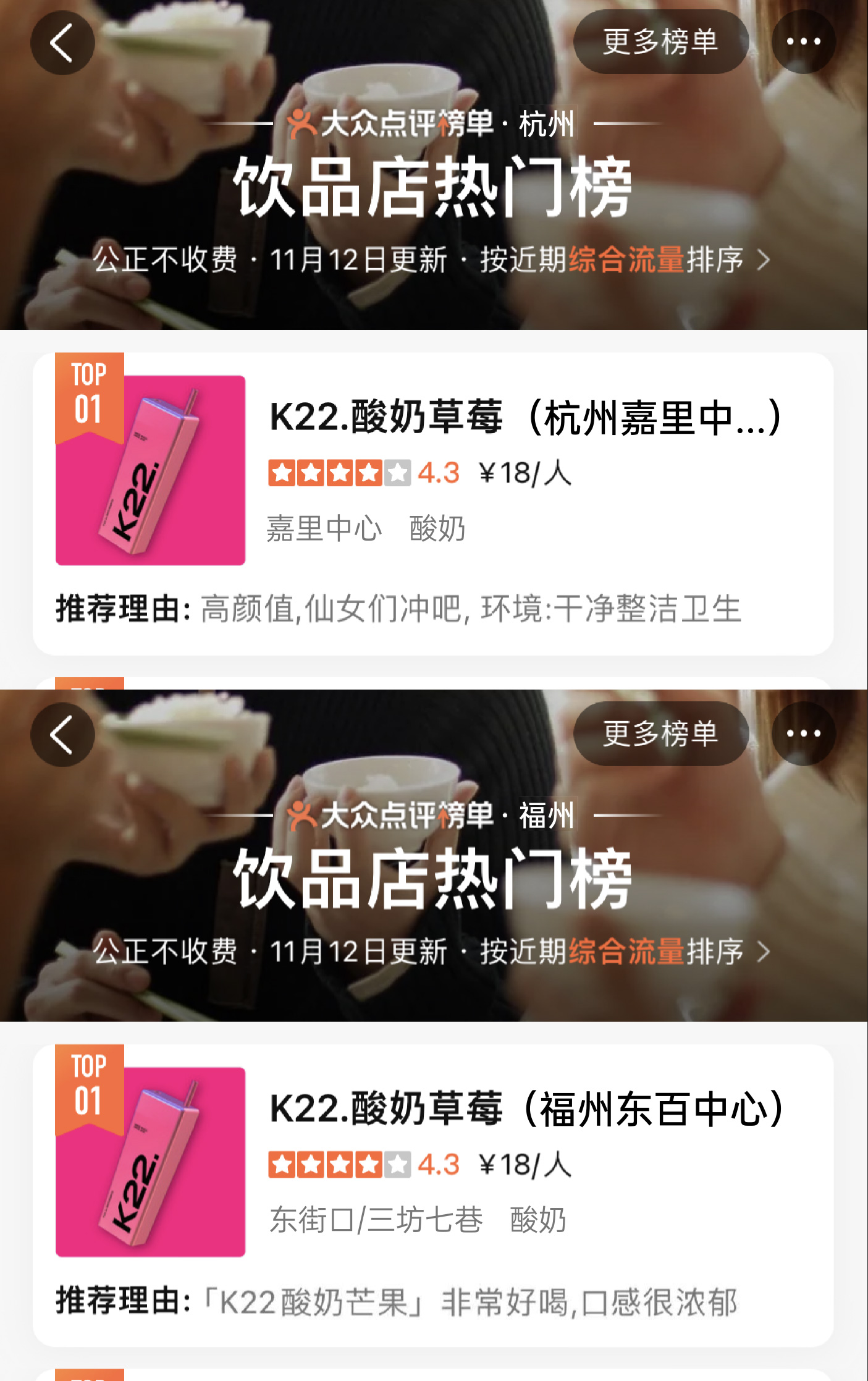 K22凭独特且专属的粉色与大方杯的品牌标识加上高品质产品而广受好评,深受广大消费者的喜爱。曾在0宣传情况下登上北京市/南京市/郑州市/无锡市/长春市/南宁市哈尔滨市饮品热门榜第一名。